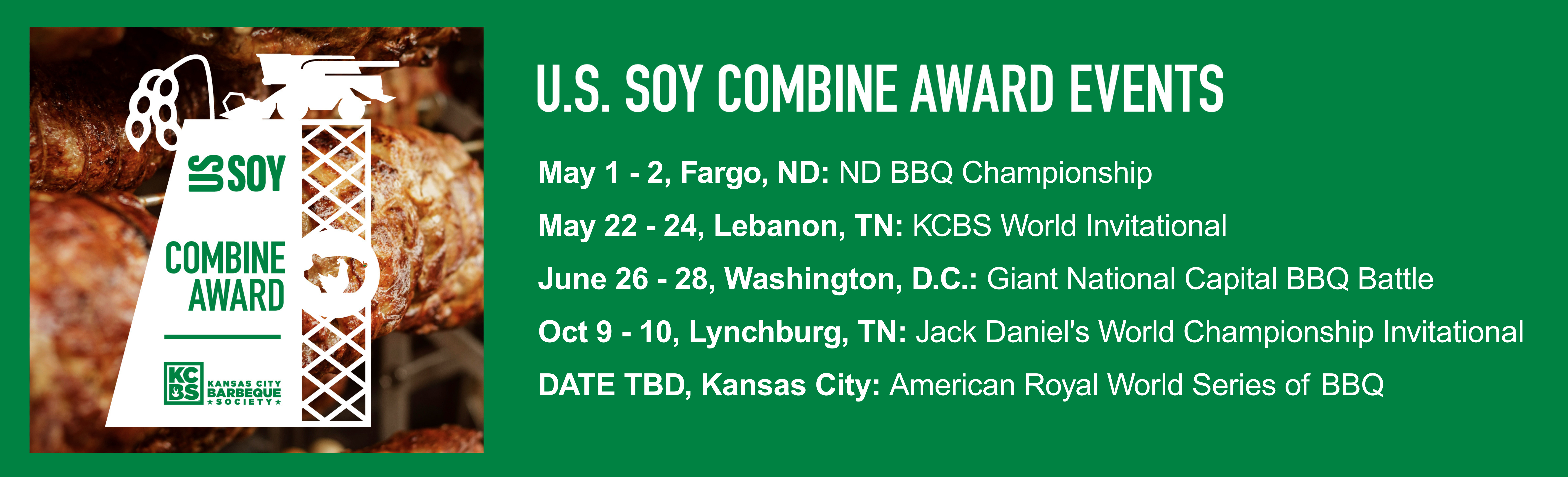 The U.S. Soy Combine Award is back, celebrating the best in BBQ and the power of soy-fed proteins. This season, elite pitmasters will compete at six events across the country. The team with the highest combined score across pork, chicken, and ribs — all soy-fed meats — will take home the title, $1,000 in prize money, and U.S. Soy bragging rights.